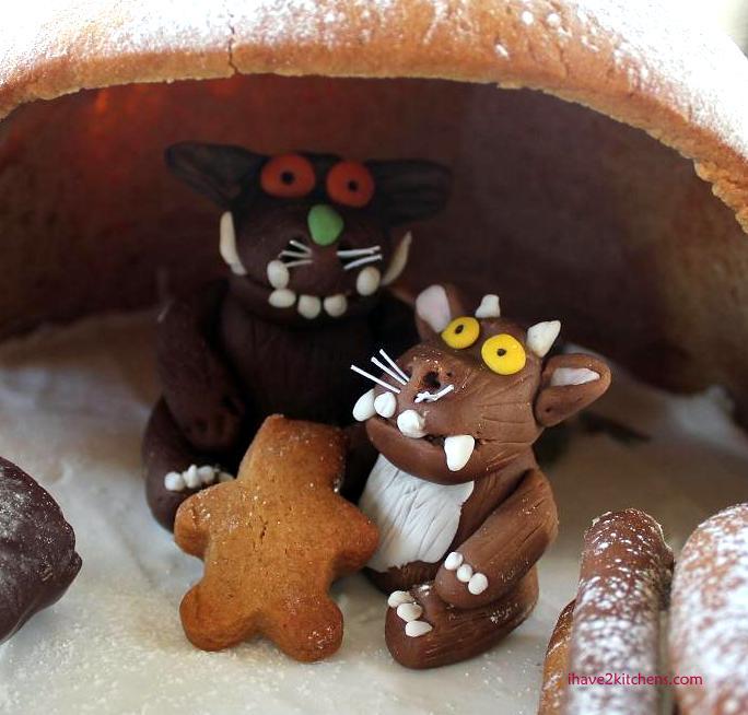 So, with Axel Scheffler’s illustrations for inspiration and Julia Donaldson‘s words resonating in my head I got working. Apart from the Gruffalo’s horns which fell off while transporting him into the cave, I was really pleased with the end scene. I then hoped to win the raffle ticket to claim my prize back (merely to keep the kids happy!), but no it wasn’t meant to be. Even if I did, I wouldn’t have eaten much of it as I find icing far too sweet to tolerate for more than a few bites. I took enough photos to satisfy me.
