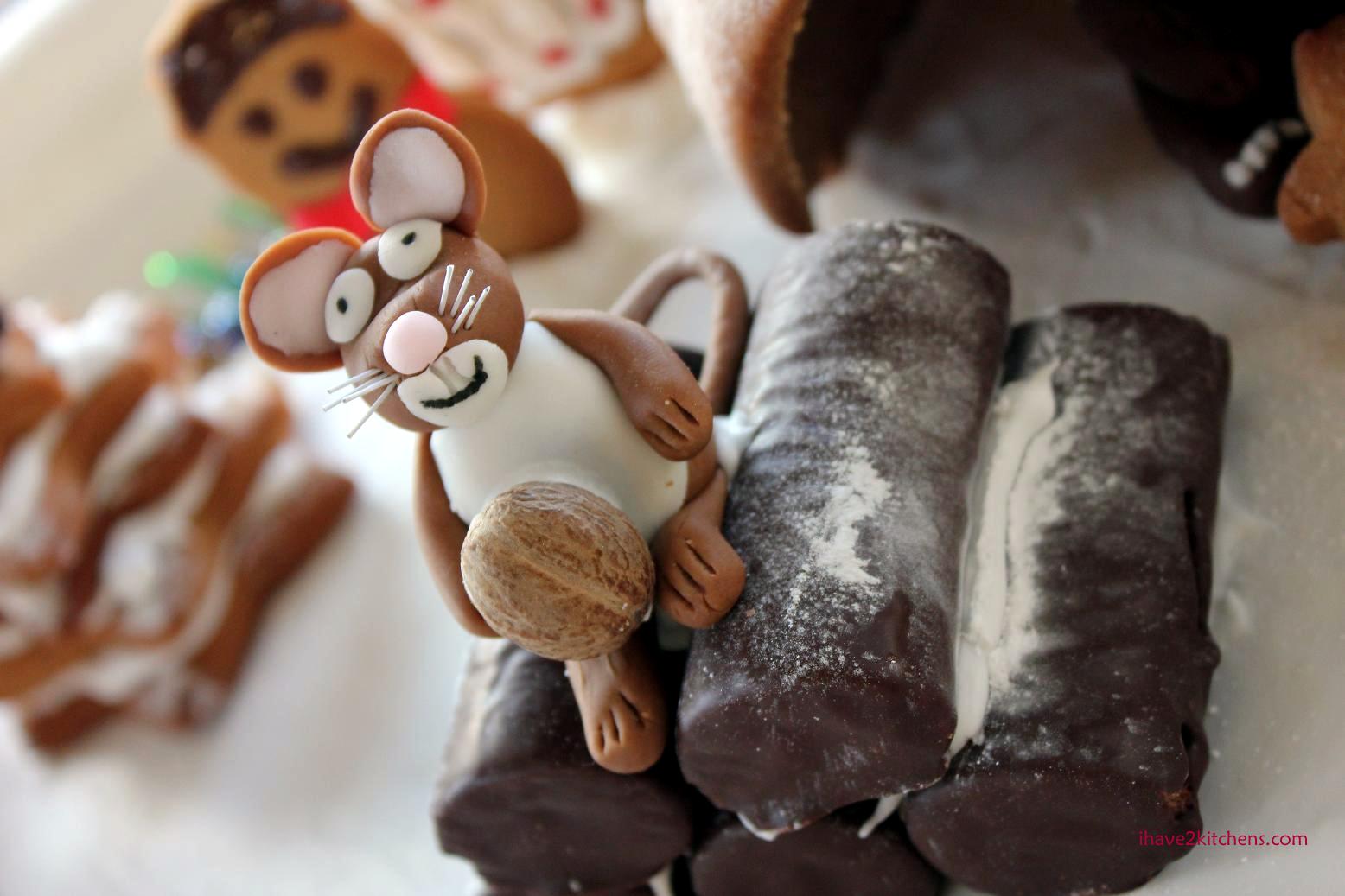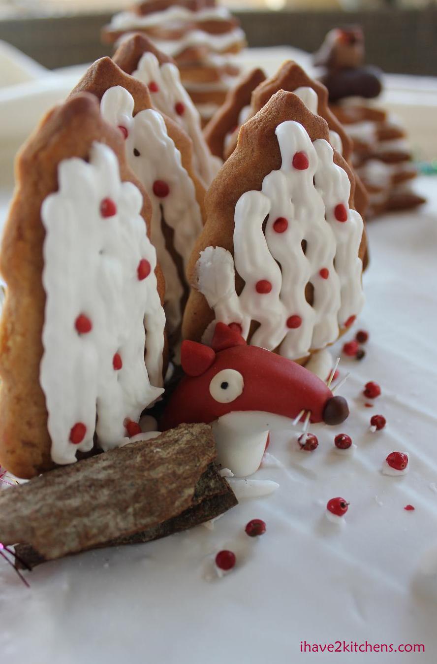 The whole scene is made of gingerbread biscuits, royal icing, and sugar-paste for the animal models.