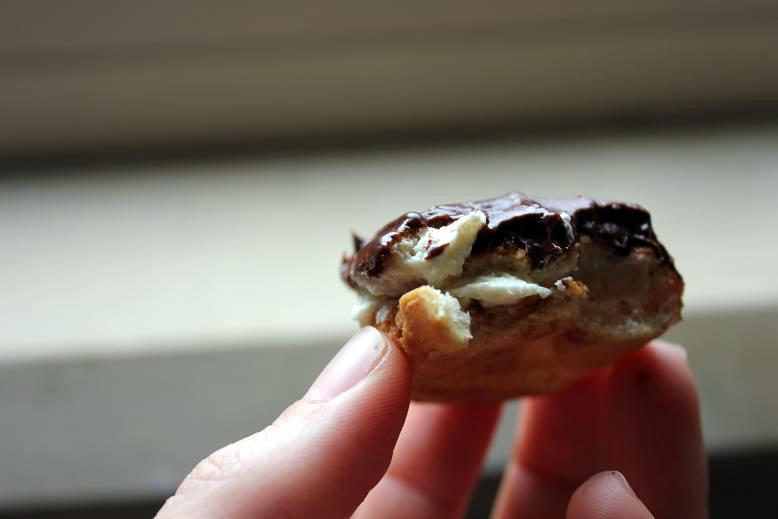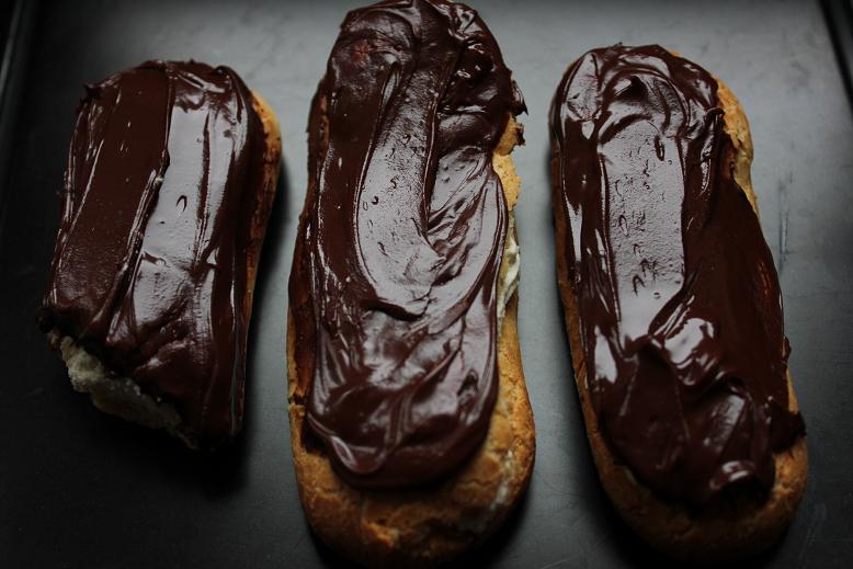Now, have fun spreading the éclairs with the glossy chocolate. Enjoy!