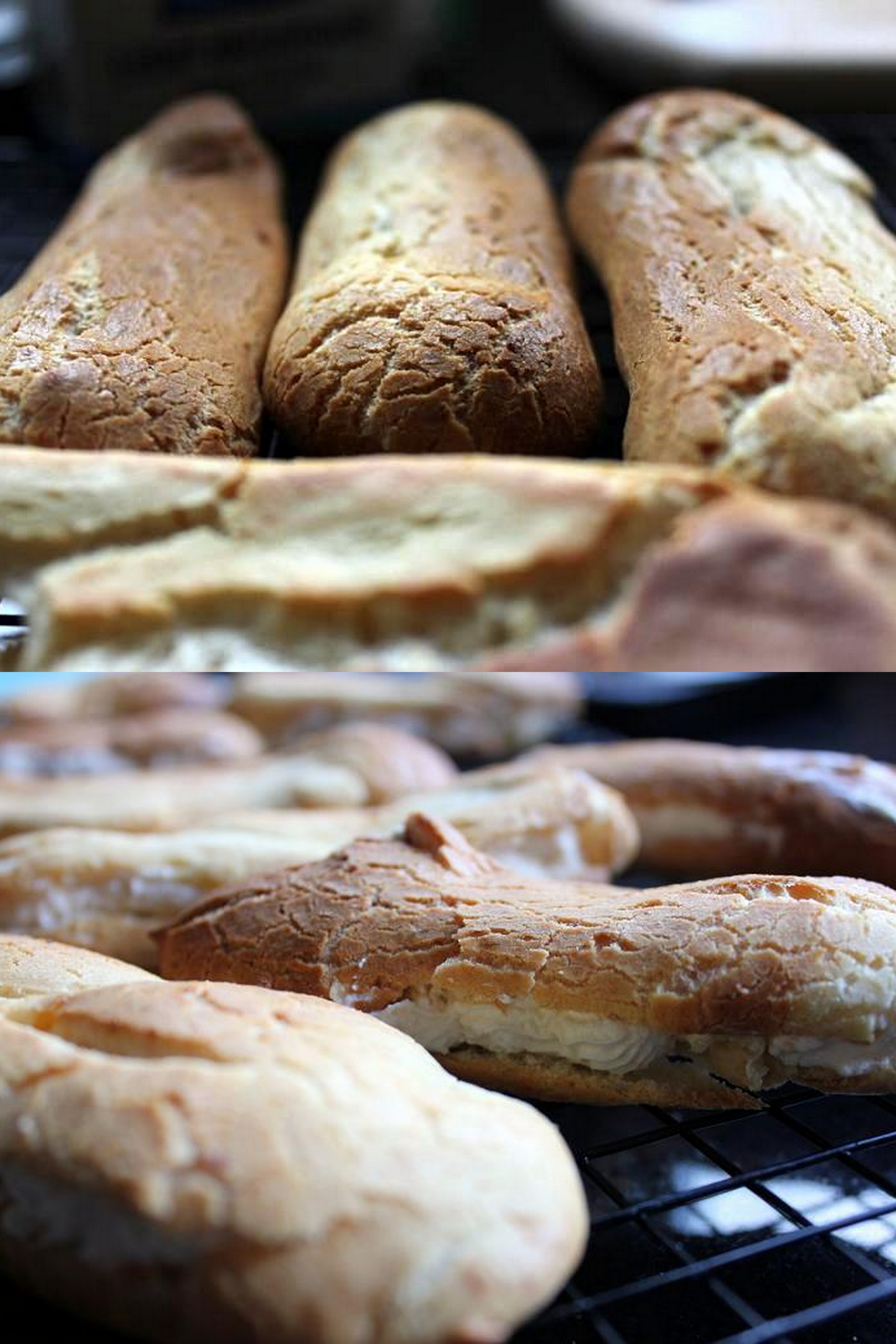 Carefully cut the cooled éclairs along one side and pipe the cream until filled.