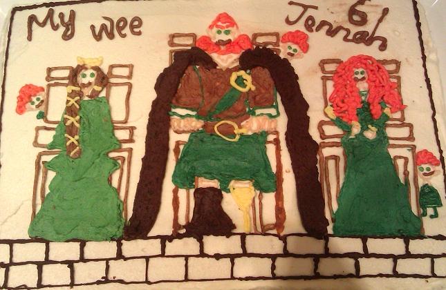 Putting philosophy to one side (I always get carried away), I set off to create a picture I saw online featuring Merida and her family – The Queen, The King and her 3 ‘wee devil’ triplet brothers, the princes. I tell you, piping butter-cream to draw an intricate drawing was a ‘Brave’ move by me. The smile on my daughter’s face when she saw it really made all my efforts worth it, even though I would like to call my drawing attempt an ‘Abstract Child Art’.