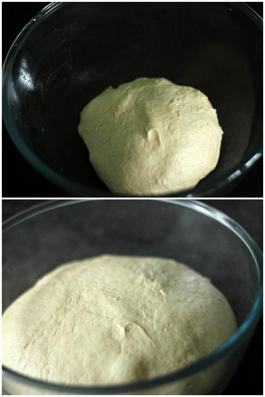 When you have a soft, stretchy dough, add to a well oiled bowl, cover with plastic wrap, and leave to rise in a warm place until doubled in size. The time it takes for the dough to rise depends on the room temperature, the flour used and the humidity in the air; anything between 1-3 hours.
